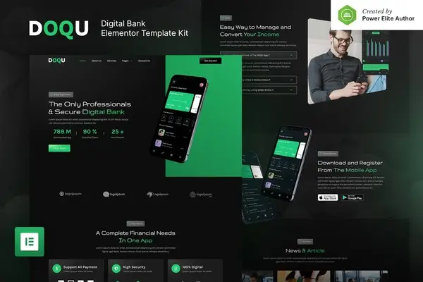Hãy cùng khám phá DOQU – bộ mẫu Elementor hoàn hảo để tạo ra những trang web hiện đại, mang phong cách tối màu dành cho các ngân hàng kỹ thuật số và ví điện tử. Được thiết kế với thẩm mỹ hiện đại, DOQU cung cấp khả năng tùy chỉnh dễ dàng và tích hợp liền mạch với Elementor. Cho dù bạn là nhà phát triển web chuyên nghiệp hay chủ doanh nghiệp, DOQU đều giúp bạn xây dựng một nền tảng tài chính chuyên nghiệp một cách nhanh chóng và hiệu quả, nâng cao trải nghiệm người dùng và sự tin tưởng.